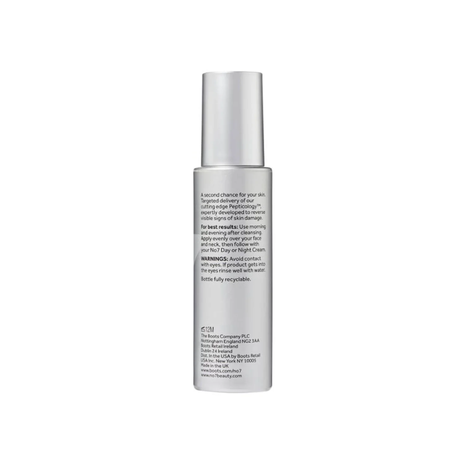 No7 Future Renew™ Damage Reversal Serum reverses visible signs of skin damage in just 4 weeks*. This peptide face serum is formulated with Pepticology™, No7’s new and patent-pending peptide technology. Pepticology is exclusive to No7’s Future Renew line and supports the skin’s natural self-repair process. Future Renew serum reverses the appearance of skin damage like fine lines and wrinkles, uneven texture and skin tone, dryness, and loss of firmness**. This skin repair serum is designed to be used with the rest of the No7 Future Renew line. Apply serum evenly over your face and neck every morning and evening after cleansing, then follow with No7 day or night cream. No7 is the U.K.’s best-kept beauty secret with over 85 years of trusted expertise – exceptional beauty shouldn’t be a luxury.