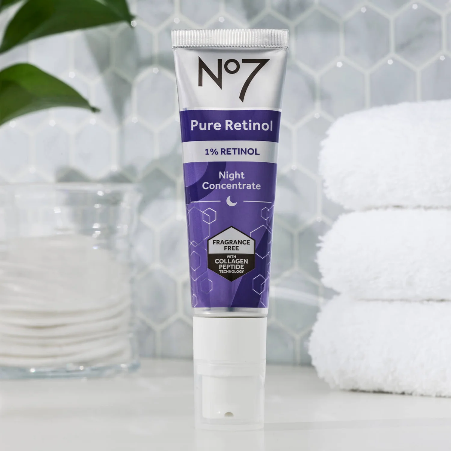 - No7 Pure Retinol 1% Night Concentrate includes No7’s highest strength pure retinol to visibly transform skin.