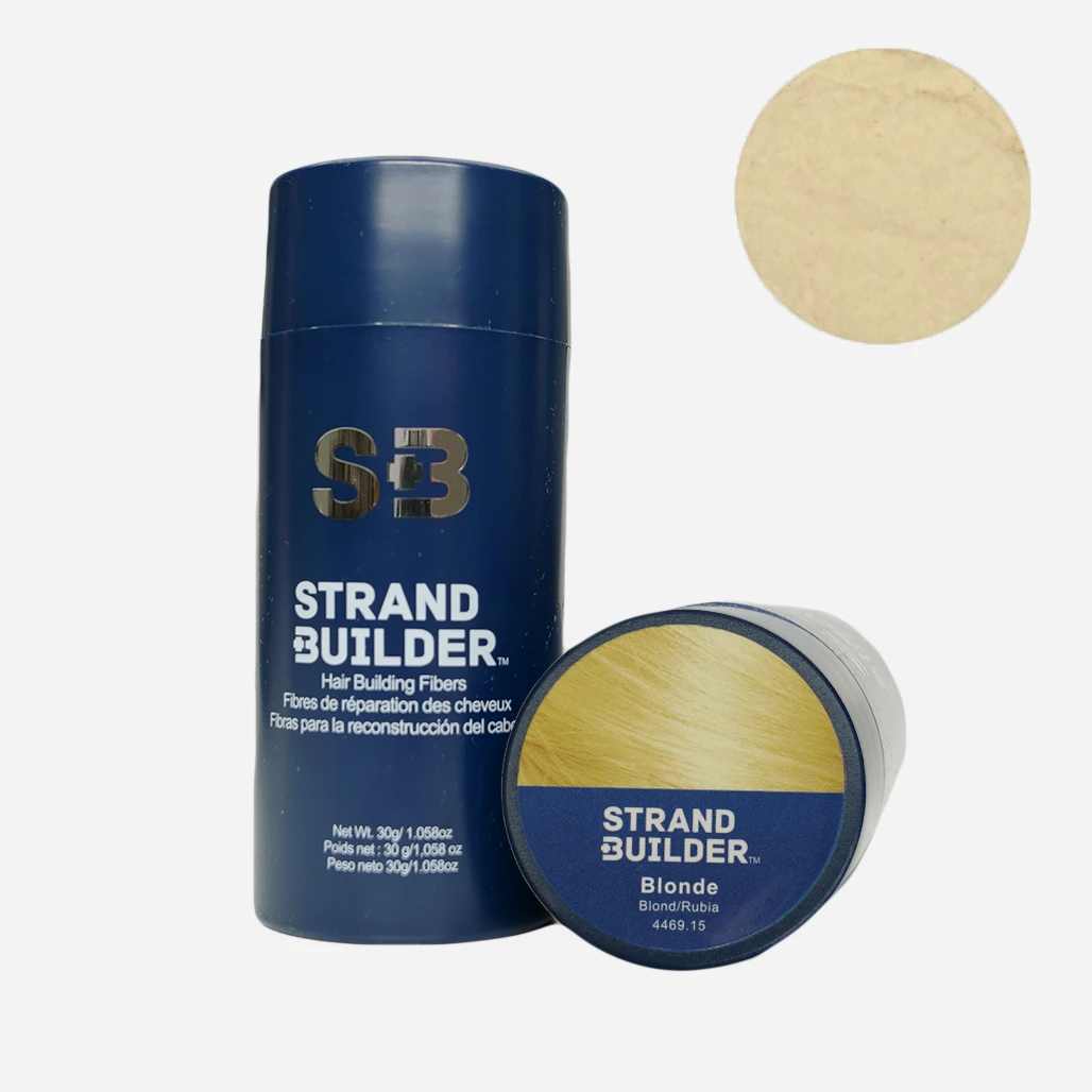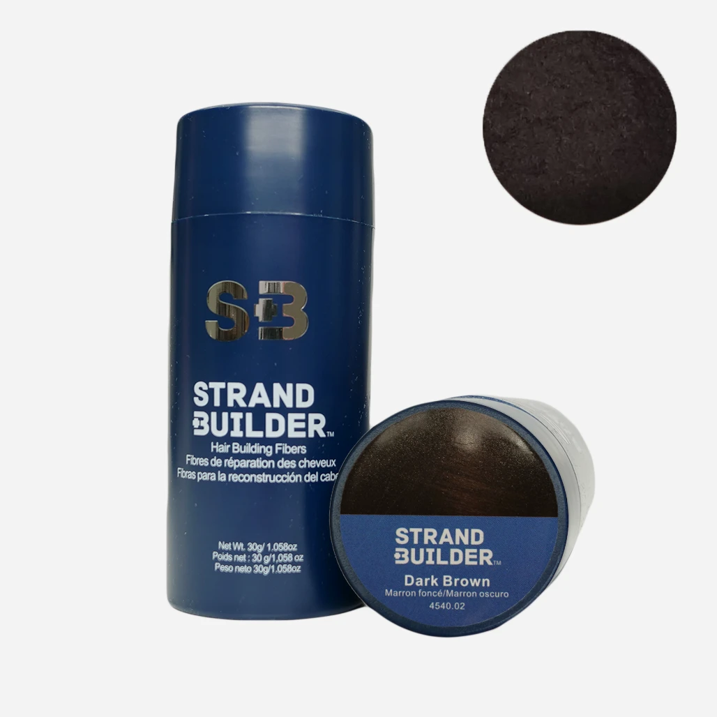 Strand Builder rebuilds your hair with natural keratin fibers that are designed to statically cling to existing hair, building each strand for thicker-looking hair.